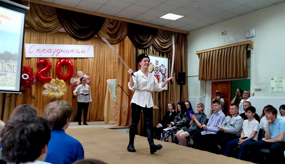 Завершилась предметная неделя общешкольным праздником «Юбилейное зазеркалье». В этом году школа отмечала 20 лет школьного подиума. Учащиеся 5-11 классов вместе с педагогом Ольгой Ивановной Нейя готовились к этому мероприятию весь год. Шили одежду на кружке «Студия кутюрье», уроках технологии, готовились к ее демонстрации на подиуме. Учились танцевать, занимались вокалом, осваивали умение владения шашкой. Гостями праздника были представители попечительского совета, которые подарили школе настоящий подиум и дети каждый год выходят на него, демонстрируя свои работы, выполненные в течение года. Также на празднике присутствовали ветераны школы, родители и выпускники.