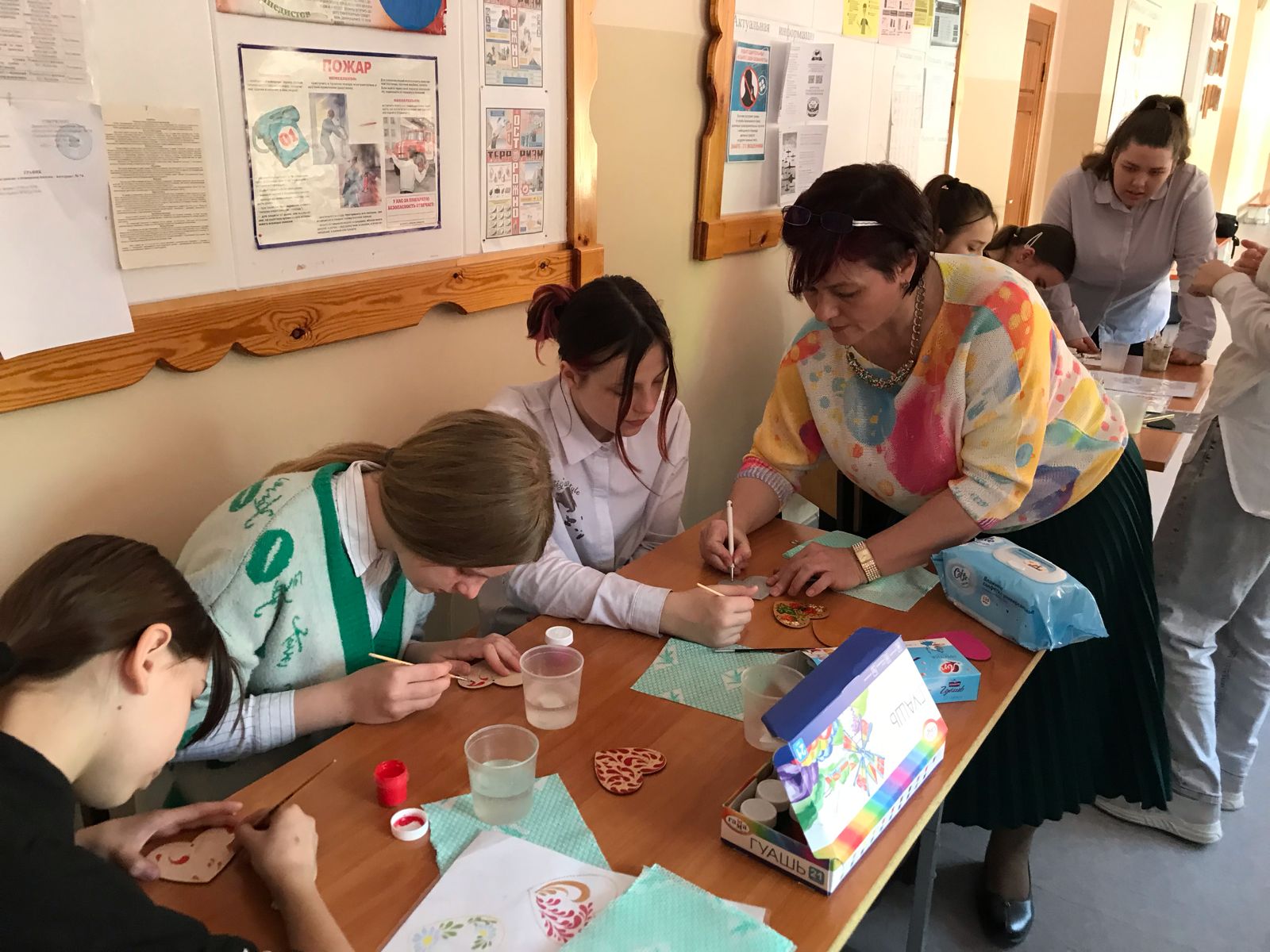 Были проведены мастер классы по кружевоплетению и росписи по дереву. Ребята с интересом знакомились с этими видами прикладного творчества.