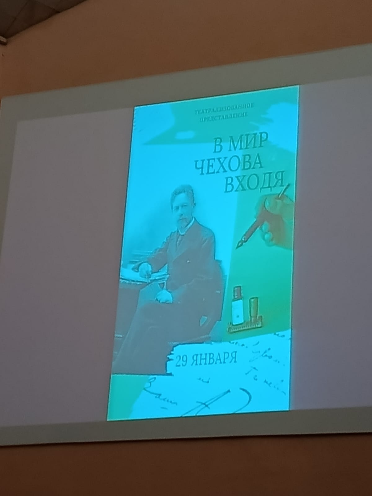 29 января 2024 года учащиеся 10 и 11 классов Таганрогского филиала ГКОУ РО «Ростовская-на-Дону санаторная школа-интернат № 74» вместе с учителем русского языка и литературы Кох-Мясниковой А.Н. посетили театрализованное представление "В мир Чехова входя" в ДК "Фестивальный". С большим удовольствием посмотрели небольшой биографический фильм о Чехове, театрализацию рассказов "Лошадиная фамилия", "Дипломат", "Беззащитное существо", поучаствовали в викторине о жизни и творчестве нашего великого земляка. Лучшим знатоком, по итогам викторины, был признан ученик 10 класса нашей школы Дедович Алексей. С чем мы его и поздравляем