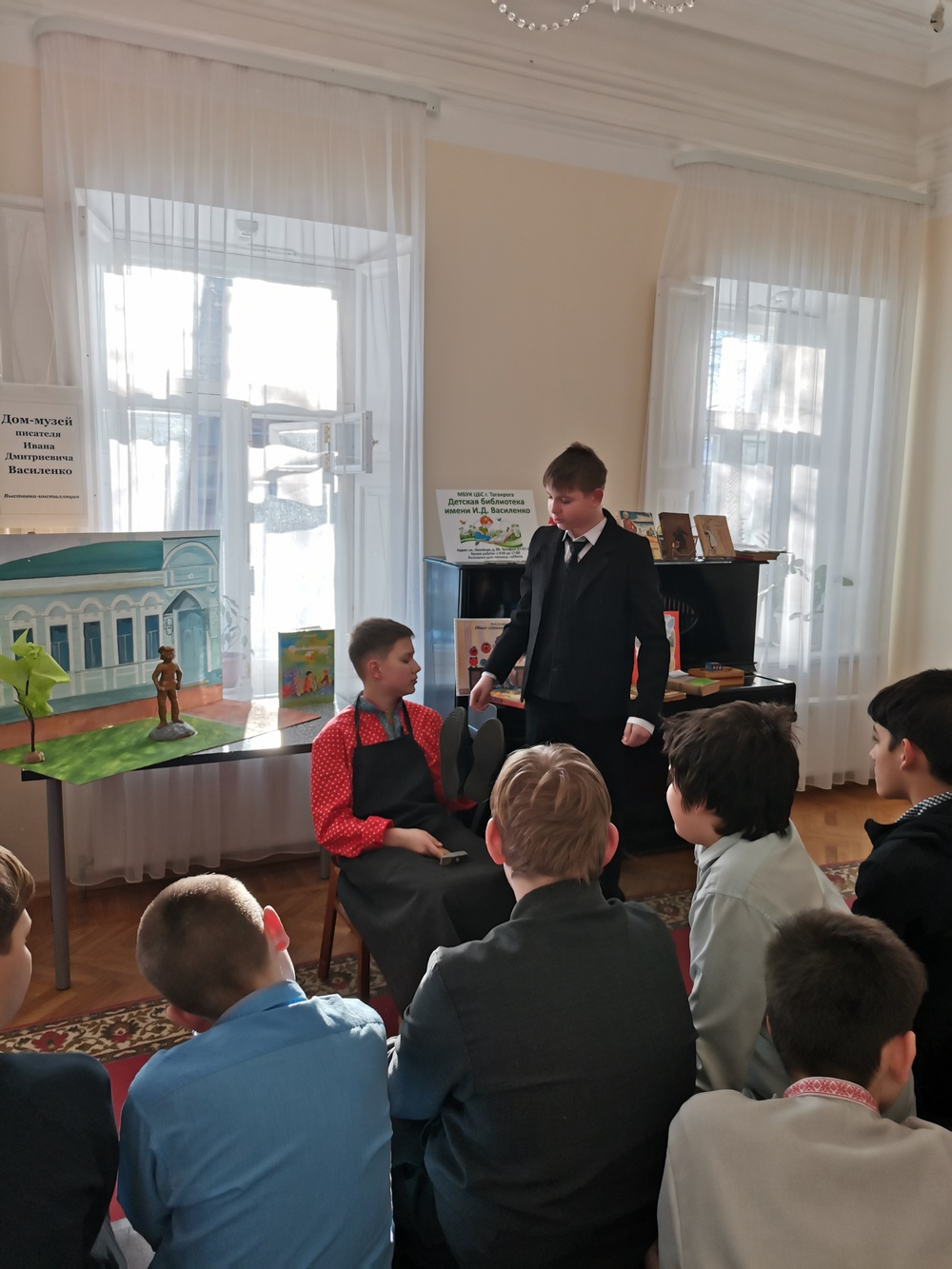 23 января 2024 года в Доме-Музее детского писателя И.Д. Василенко состоялось мероприятие «Писатель, влюблённый в Таганрог», посвященное 129-летию со дня рождения Ивана Дмитриевича. Учащиеся Таганрогского филиала ГКОУ РО «Ростовская-на-Дону санаторная школа-интернат № 74» очень хорошо знакомы с творчеством нашего земляка, ведь первый музей был создан именно в нашей школе по инициативе Зак Ю.Л. в 1986 году. Впоследствии музейные экспонаты были переданы в Дом-Музей писателя.
