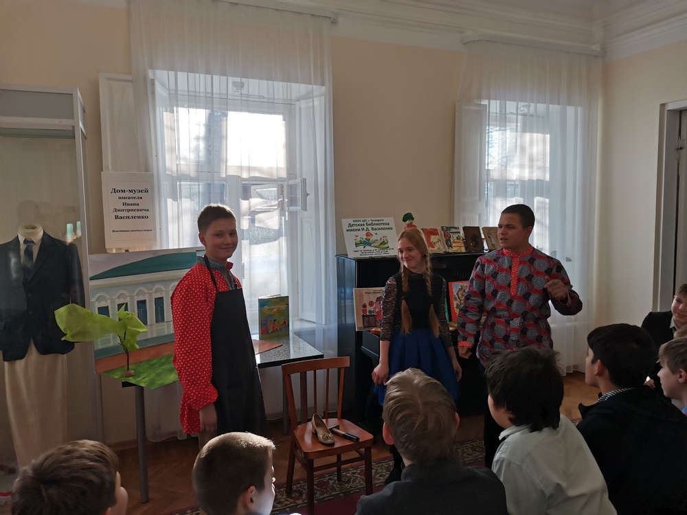 Участники студии театральных миниатюр «Подмостки» (руководитель Фролова Н.В.) подготовили театральную зарисовку по произведениям И.Д. Василенко. Встреча в музее получалась по-семейному тёплая и запоминающаяся.