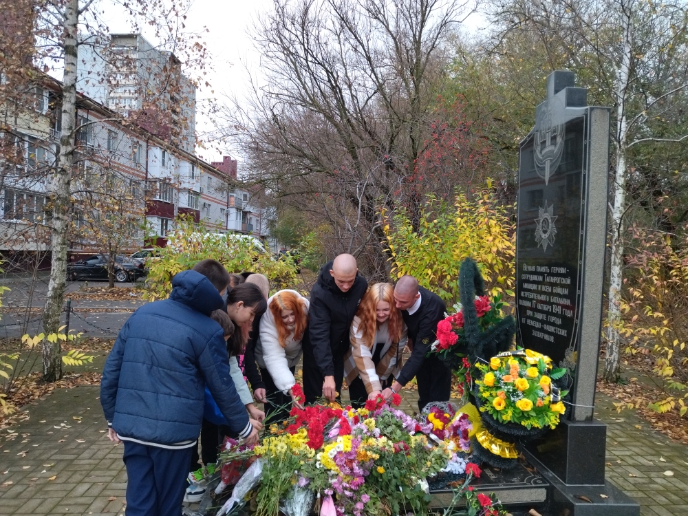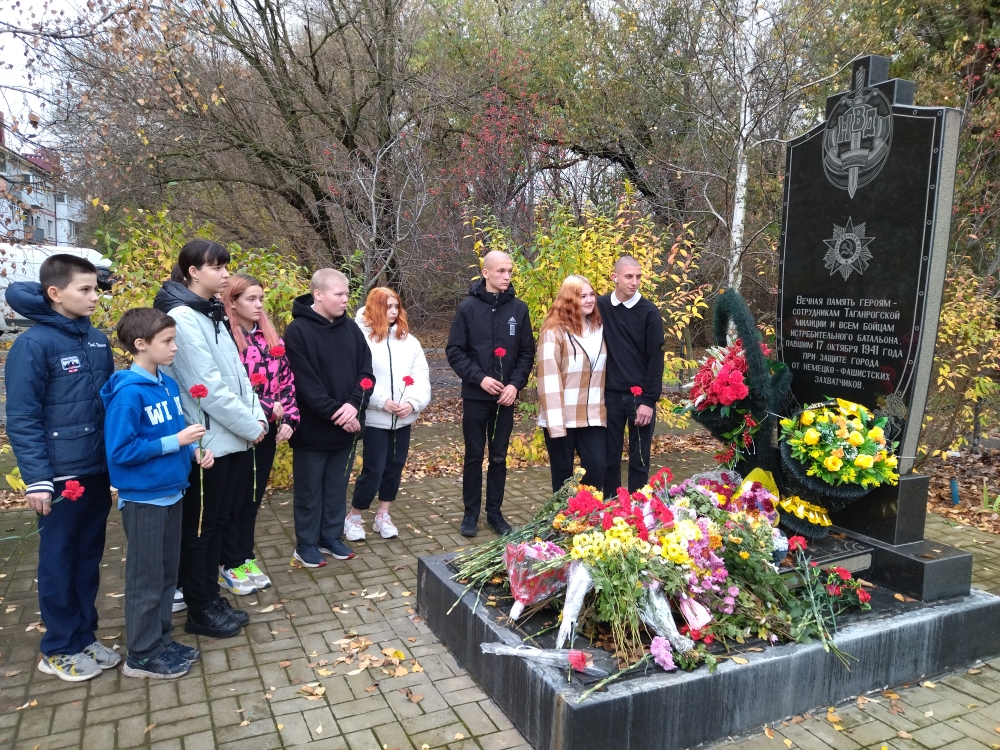 8 ноября в России отмечают День памяти погибших при выполнении служебных обязанностей сотрудников органов внутренних дел РФ. В Таганроге этот памятник находится у лесополосы по ул. Шаумяна, 10. Для обучающихся нашей школы это стало традицией – возлагать цветы и вспоминать погибших милиционеров при обороне Таганрога в 1941 году, и тех, кто отдал свои жизни в мирное время, встав на пути преступлений и беззакония.