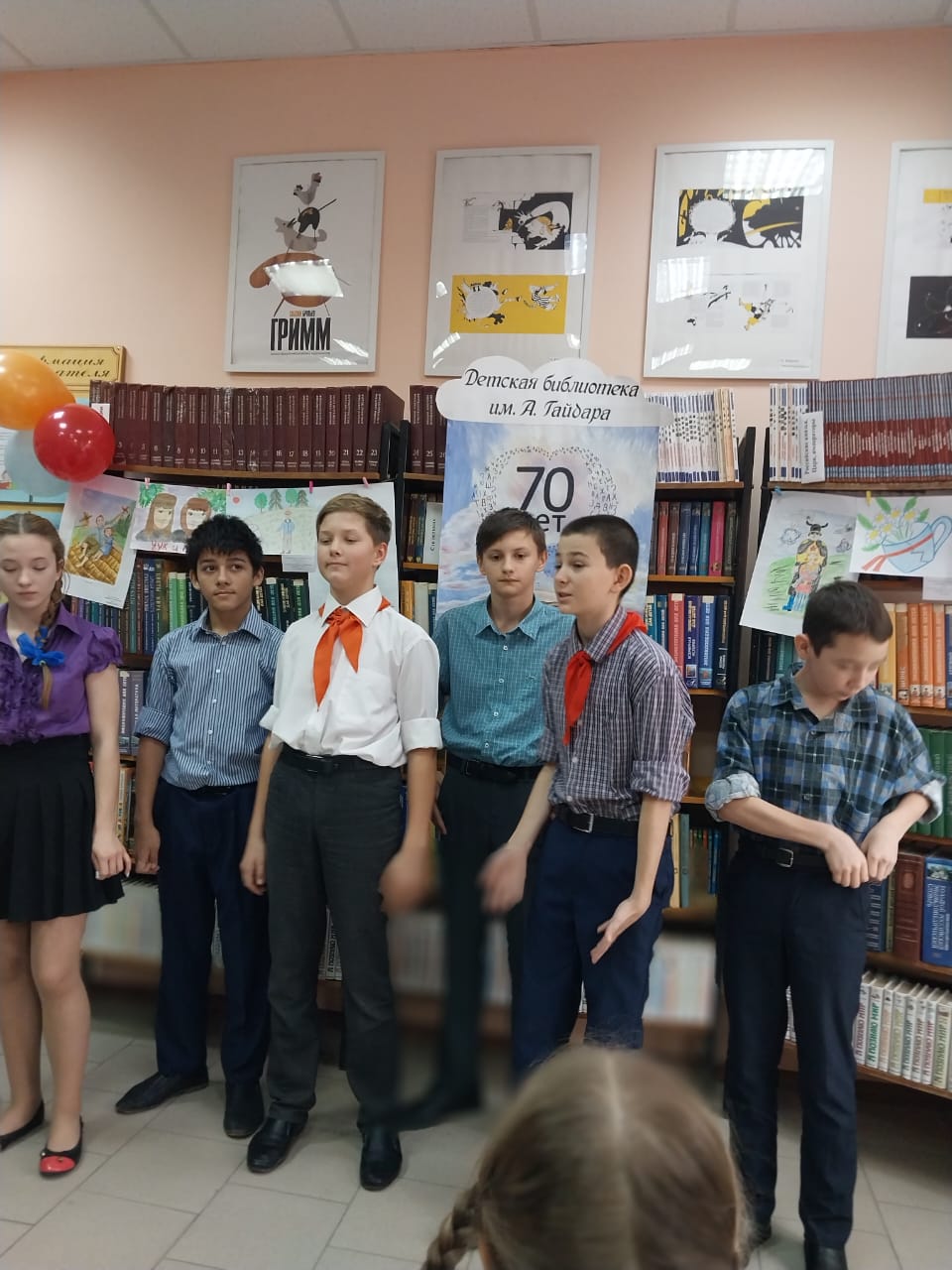26 октября 2023 года младшая группа Студии театральных миниатюр «Подмостки» (руководитель Фролова Н.В.) пришла в Детскую библиотеку имени А.Гайдара – филиал № 2 МБЦК ЦБС г. Таганрога поздравить коллектив с юбилеем - 70-летием. В качестве подарка юные актеры подготовили отрывок из произведения А.Гайдара «Тимур и его команда».