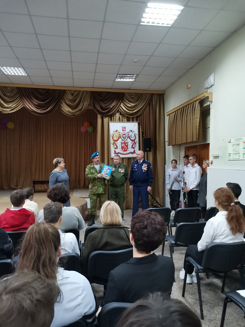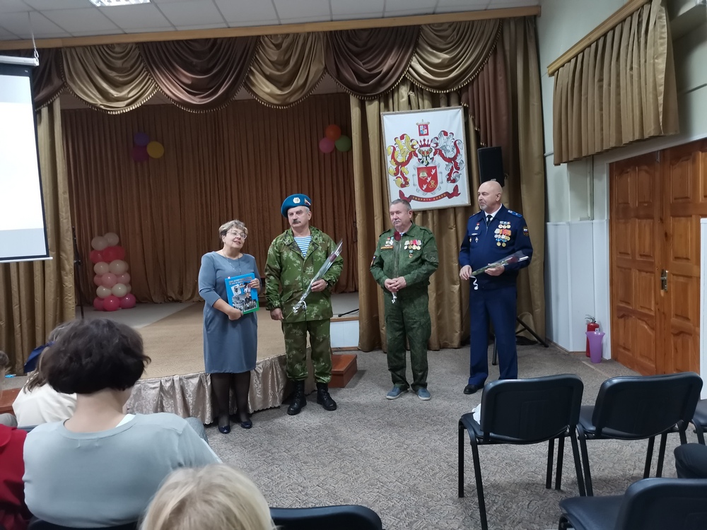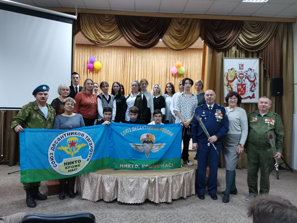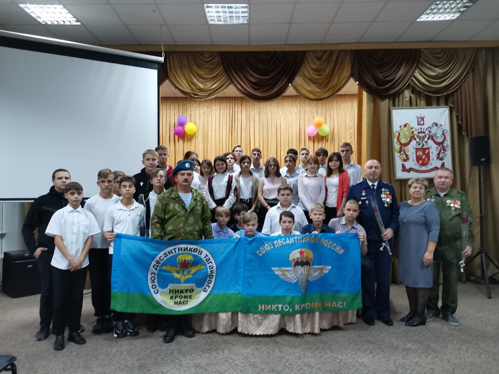24 октября 2022 года в Таганрогской филиале ГКОУ РО «Ростовская-на-Дону санаторная школа-интернат № 74» прошел Урок мужества на который были приглашены председатель региональной общественной организации ветеранов военной службы «Союз десантников Таганрога» гвардии майор Сетьков А.А., председатель Союза ветеранов Афганистана старший лейтенант запаса Никифоров С.Ф и проходивший службу в Афганистане гвардии майор авиации Усков В.Н. Состоялся очень серьезный разговор о ситуации в нашей стране и мире, о том, что в жизни всегда есть место подвигу, о наших земляках, кто с честью защищают нас сегодня от неонацизма и фашизма на территории нашей Родины и на подступах к нашим границам, минутой молчания почтили память тех, кто отдал свою жизнь в борьбе за свободу и независимость нашей страны. В свою очередь ребята рассказали ветеранам о том, что приняли участие в акции «Письмо солдату», написав и отправив на фронт письма и, сделанные своими руками, талисманы-обереги в бригаду специального назначения ЮФО.