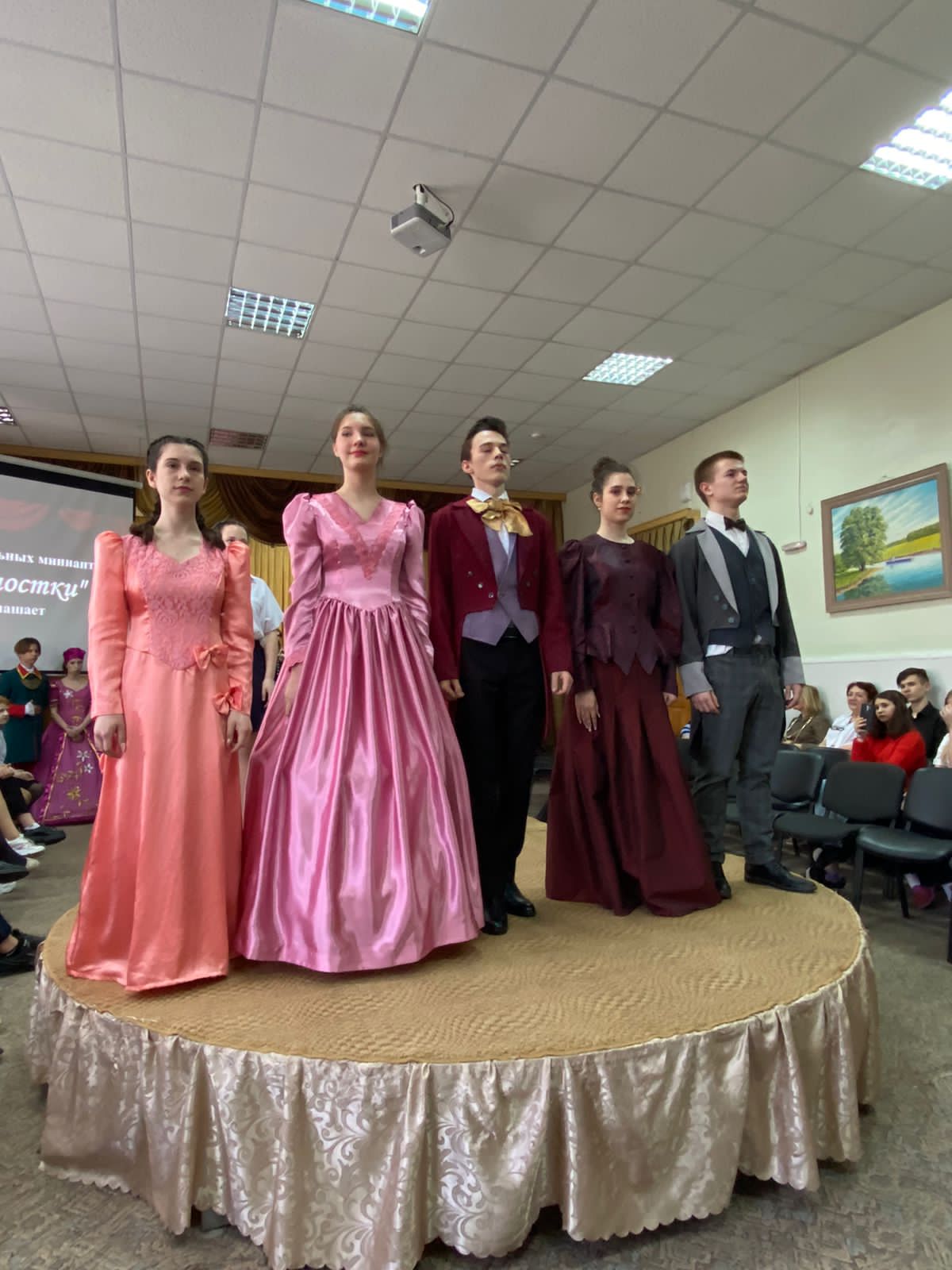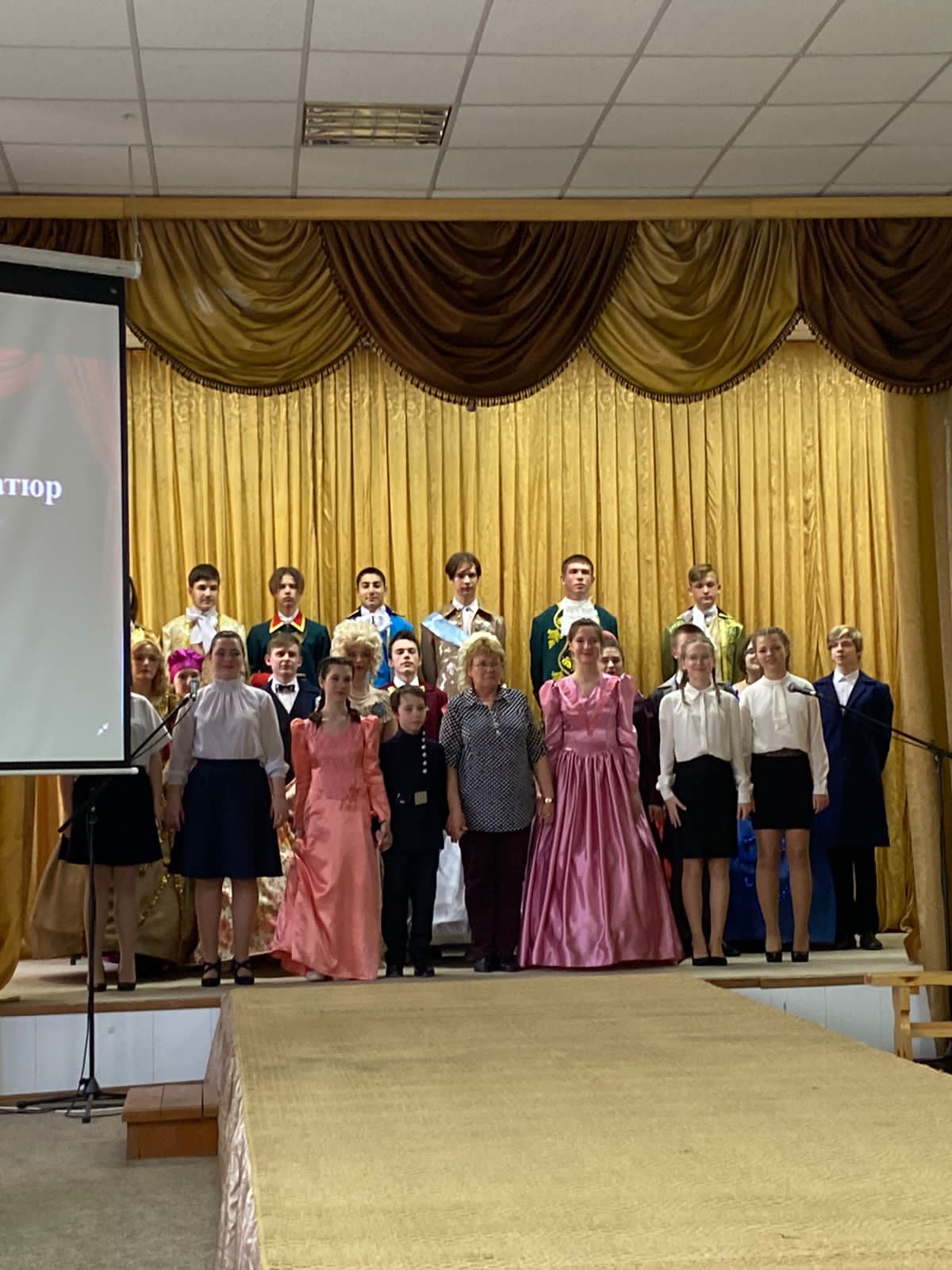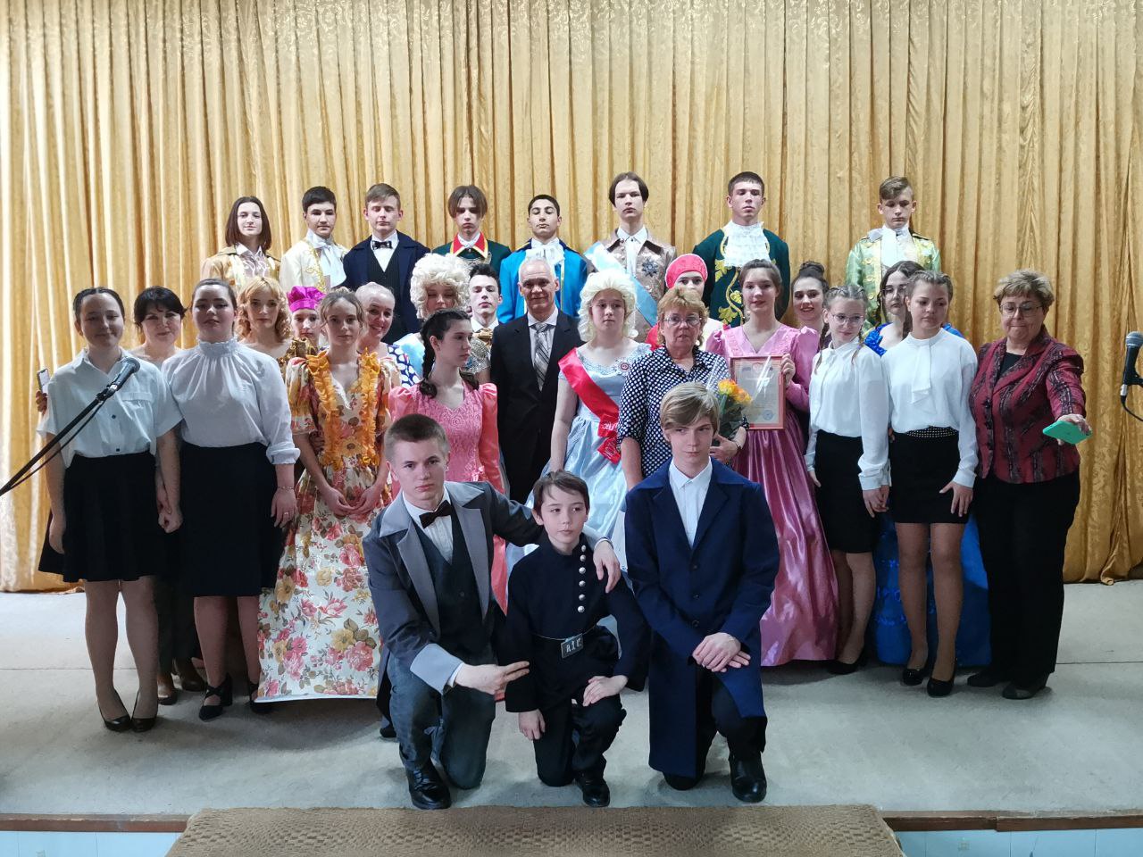 20.04. Студия театральных миниатюр «Подмостки» представили на суд зрителей театральную зарисовку «Театр – любовь моя». Красочные костюмы, игра молодых и талантливых актеров школьного театра, занимающихся в кружке не один год, порадовали гостей и всех присутствующих в зале. Все прошло на одном дыхании. Работа педагога Фроловой Натальи Владимировны и её студийцев были оценены бурными аплодисментами.