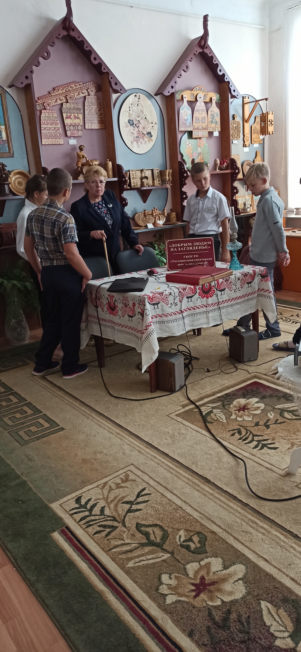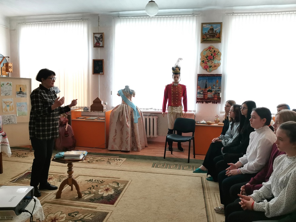В сентябре традиционно для учащихся 5 класса ГКОУ РО «Ростовская-на-Дону санаторная школа-интернат № 74» состоялась первая встреча со школьным Музеем живописи и народных промыслов. Руководитель школьного музея Фролова Н.В. рассказала ребятам о том, как создавался музей, о его уникальных экспонатах, о традициях и интересных делах.