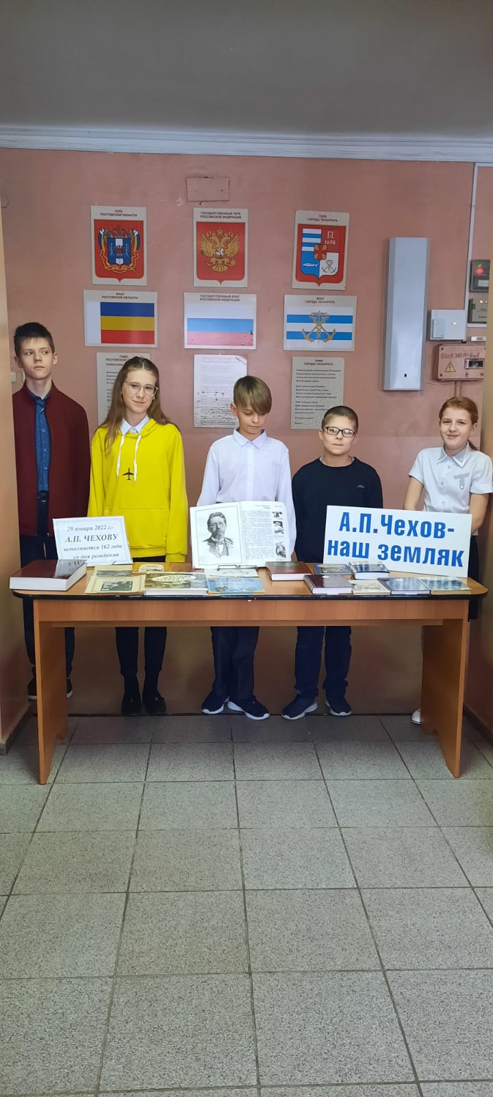С 24 по 29 января 2022 года в ГКОУ «Ростовская-на-Дону санаторная школа-интернат №74» (Таганрогский филиал) прошла Чеховская неделя. В фойе школы была оформлена книжная выставка «А.П.Чехов – наш земляк» и представлены детские рисунки по произведениям писателя. В библиотеке проводились громкие чтения рассказов писателя среди обучающихся 5-8 классов.