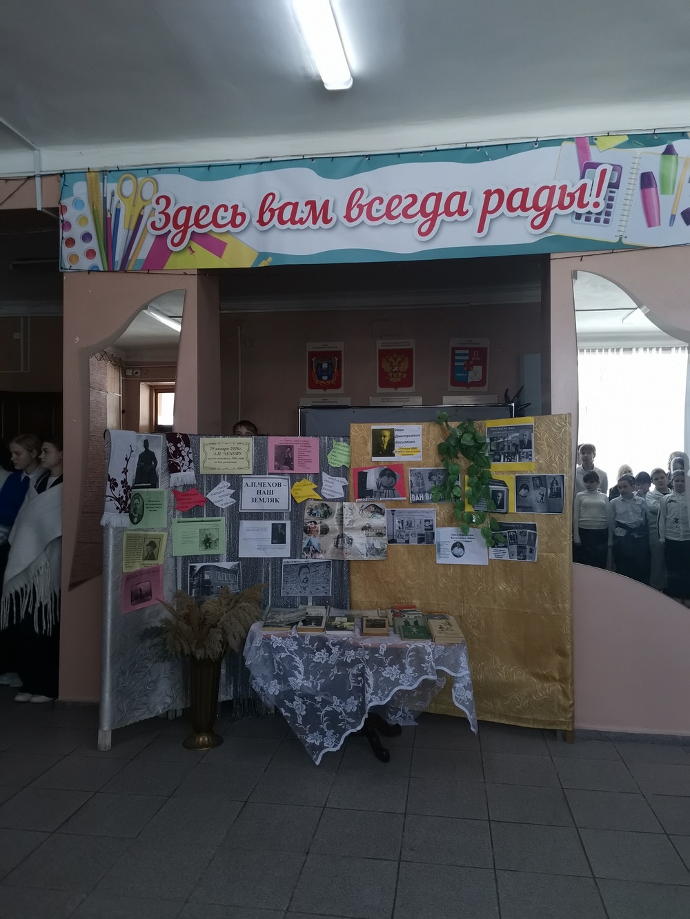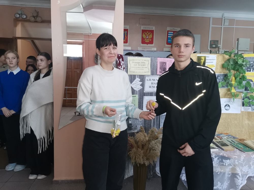 Имена двух великих писателей Ивана Дмитриевича Василенко и Антона Павловича Чехова ознаменовали январский календарь важных событий в таганрогском филиале и в городе Таганроге. 26 января в филиале прошла линейка, посвященная творчеству этих писателей. Ребятам был представлен ролик об. И.Д. Василенко, который снимали выпускники школы в 2023 году, и, с которым стали победителями городского конкурса. Соавтор и руководитель творческой группы, которая создавала этот ролик, учитель высшей квалификационной категории, руководитель методического объединения учителей-предметников Анастасия Николаевна Кох-Мясникова напомнила ребятам о некоторых фактах из биографии великого земляка. А о творчестве Антона Павловича Чехова присутствующие вспоминали, отвечая на вопросы литературной викторины. За правильные ответы ребята получали сладкие призы. В вестибюле школы была размещены выставки иллюстраций к произведениям Василенко И.Д. и Чехова А.П., а также книжная выставка из фондов школьной библиотеки.