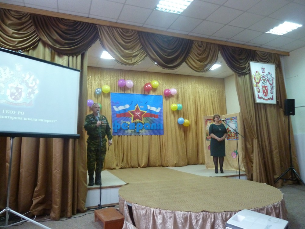 22 февраля 2019 года в ГКОУ РО «Таганрогская санаторная школа-интернат» состоялся праздничный концерт, посвященный Дню Защитника Отечества. Этот праздник непосредственно связан с историей нашего государства, нашего народа. Необходимо как можно чаще перелистывать страницы нашей истории, чтобы в очередной раз убедиться, как самоотверженно защищали Отечество наши предки. На праздник были приглашены почетные гости – представители Общественной организации «Союз десантников Таганрога», Заслуженный учитель России Зак Ю.Л. Концертная программа была подготовлена творческими коллективами школы: театральной студией «Подмостки» руководитель Фролова Н.В.; танцевальным коллективом «Жемчужина» руководитель Подопригора М.И. и вокальной группой руководитель Харченко Н.В.
