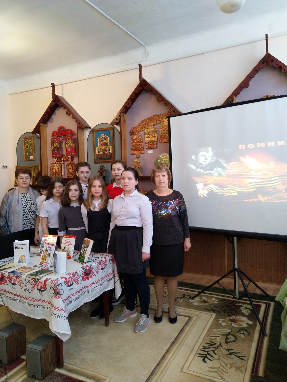 19 февраля 2019 года в ГКОУ РО «Таганрогская санаторная школа-интернат» на базе школьного музея педагогом-библиотекарем Яровенко В.М. совместно с детской библиотекой им. А.Гайдара была проведена литературно-музыкальная композиция для обучающихся 6 класса «Строки, опалённые войной…» приуроченная к празднованию Дня Защитника Отечества. Это мероприятие посвящено творчеству поэтов и композиторов Великой Отечественной войны. В ходе мероприятия дети читали стихотворения К.Симонова «Жди меня, и я вернусь», Ю. Друниной «Я ушла из детства в грязную теплушку», Б.Окуджава «Белорусский вокзал» и др.