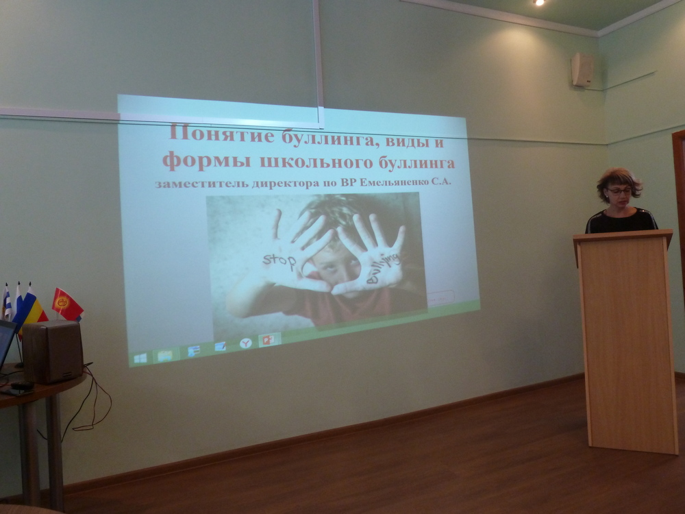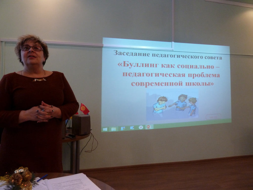 В соответствии с планом работы ГКОУ РО «Таганрогская санаторная школа-интернат» на 2018-2019 учебный год 17 января 2019 года состоялось заседание педагогического совета «Буллинг как социально – педагогическая проблема современной школы», с целью повышения компетентности педагогов в вопросах профилактики школьного буллинга и агрессивного поведения участников образовательного процесса. На заседании присутствовали представители КДН и ЗП г. Таганрога, общественных организаций «Луч Надежды», «Союз десантников Таганрога». На заседании педагогического совета были рассмотрены следующие вопросы: - Понятие буллинга, виды и формы школьного буллинга; - Психологические портреты участников буллинга. Результаты анкетирования учащихся по проблеме буллинга в школе; - Учитель как участник буллинга. Кто он – булли или жертва?; - Об ответственности педагога за травлю детей.