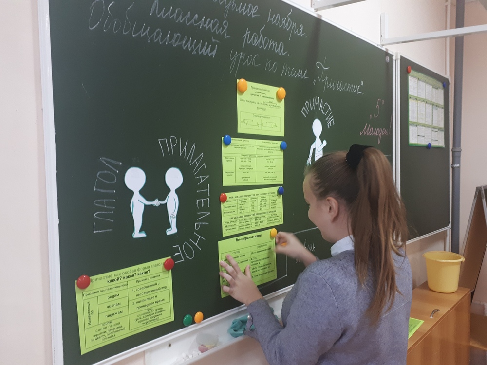 27 ноября состоялся открытый урок в 7 классе по русскому языку (Обобщающий урок по теме «Причастие» с использованием технологии «Лестница достижений», учитель Цыганова Мария Алексеевна). Для некоторых учеников «пятерка» - недостижимая вершина. Кто захочет стараться, если заранее известно, что успех не достижим? Технология «Лестница достижений» дает возможность овладеть учебных материалом на разных уровнях, но не ниже базового, в зависимости от способностей и индивидуальных особенностей личности. Является одной из наиболее эффективных технологий дифференцированного обучения. В основании «лестницы» представлены задания базового уровня, обязательные для выполнения каждым учеником. Над ними надстраиваются более сложные задания. Следующая ступенька содержит еще меньшее количество заданий, но требующих для своего решения не только знаний, но и догадки. Таким образом, каждая следующая ступенька содержит задания, требующие все более высокого уровня умений и способностей.