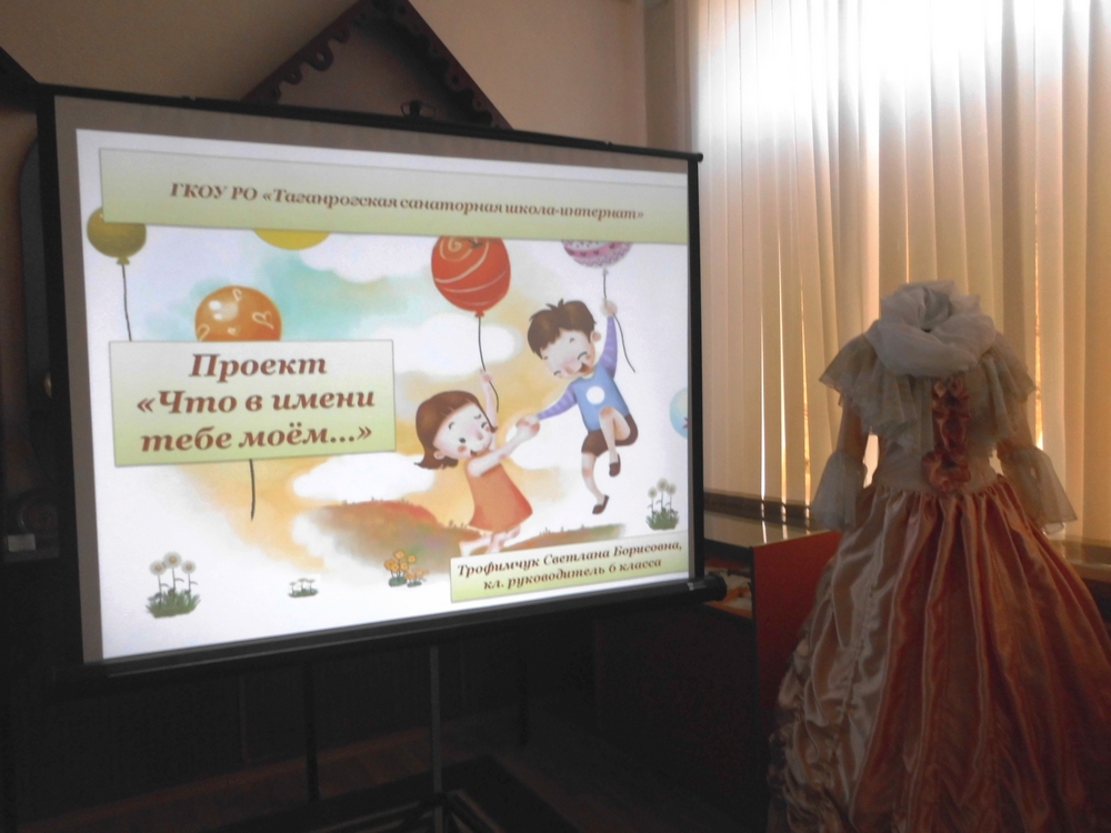 23 октября 2018 года в школьном музее живописи и народных промыслов ГКОУ РО «Таганрогская санаторная школа-интернат» был дан старт новому коллективному проекту обучающихся 6 класса «Что в имени тебе моём…». В ходе классного часа классный руководитель С.Б. Трофимчук рассказала ребятам о науке, изучающей имена, о классификации образования имён, о значении имени в жизни человека. Педагог-библиотекарь В.М.Яровенко познакомила обучающихся с книгами, в которых можно подробно узнать о значении имён, а руководитель школьного музея Н.В. Фролова – с музейными предметами, способствующими образованию имени или фамилии наших предков. В завершении классного часа ребята определили группы, задачи и направления деятельности по реализации проекта.