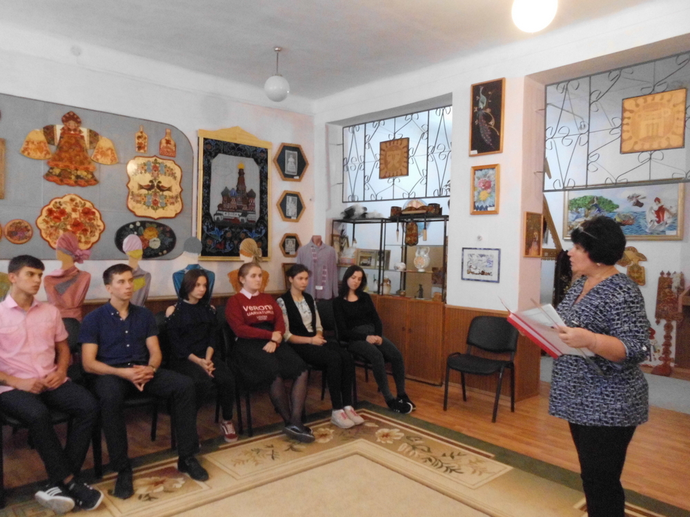 «Русская сторонка» - классный час с таким названием был проведён классным руководителем В.В. Титовой в школьном музее живописи и народных промыслов ГКОУ РО «Таганрогская санаторная школа-интернат» 23 октября 2018 года. Для русского человека очень важно его историческое наследие. Русские народные традиции и обычаи веками соблюдались как среди сельских жителей, так и среди горожан. Сейчас не многие чтят старинные традиции. Используя предметы, экспонирующиеся в музее, обучающиеся 11 класса ещё раз прониклись духом старины, соприкоснулись с культурой и бытом наших предков. Такие беседы необходимы подросткам для сохранения своего национального, народного самосознания.