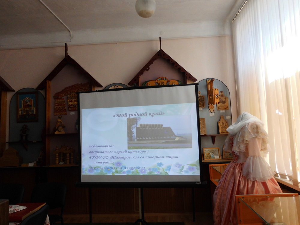 На базе школьного музея ГКОУ РО «Таганрогская санаторная школа-интернат» учителем литературы и русского языка Архипенко Е.А. для обучающихся 6 класса был проведен урок «Русский фольклор». Используя предметы музея из экспозиции «Русская изба», литературные произведения: потешки, прибаутки, сказки, ребята узнали много нового и интересного.