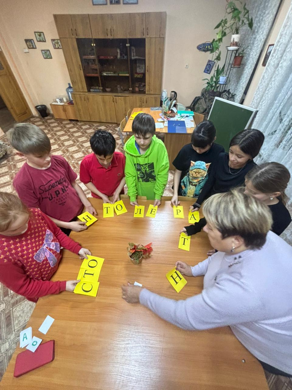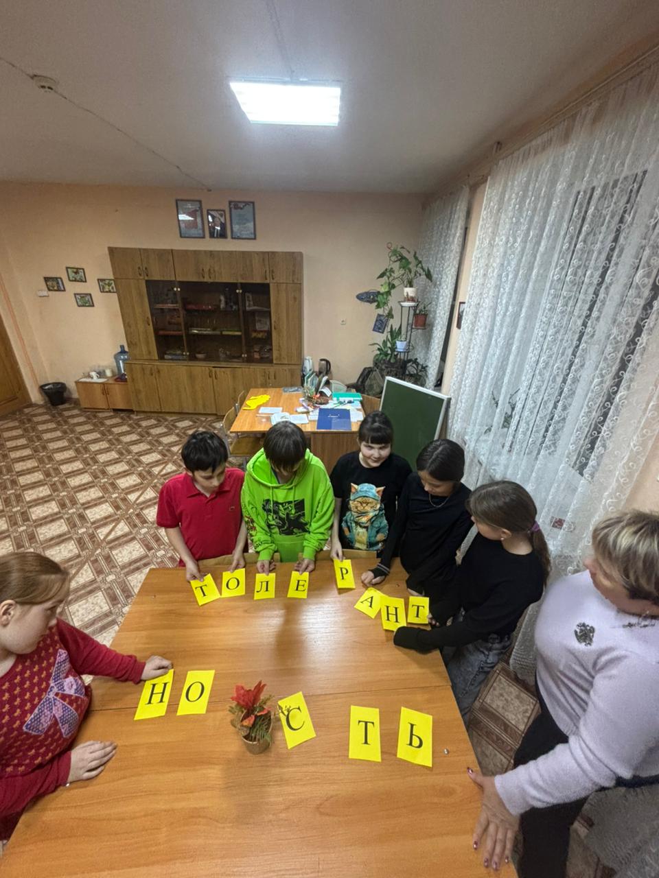 Воспитательский час по формированию толерантного отношения у учащихся ко всем людям, живущим на планете проведен для пятиклассников воспитателем 4 отряда Котляровой Заремой Равильевной. Понравился детям аукцион качеств личности, которые дети считали самыми ценными. Для закрепления усвоенного материала детям было предложено расшифровать шифрограмму. Получено слово «толерантность». Дети познакомились с новым словом и узнали его значение.