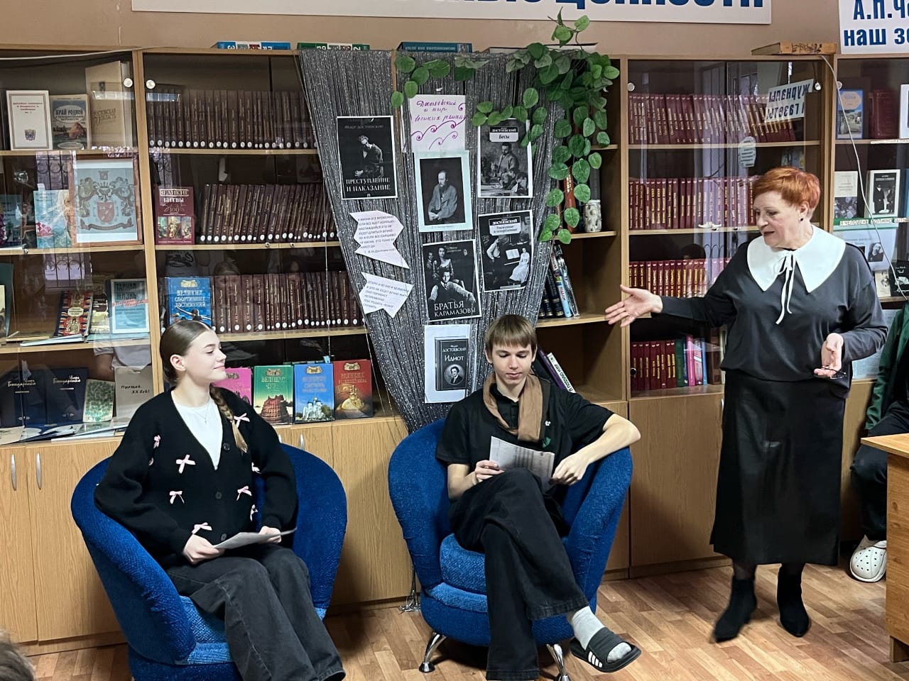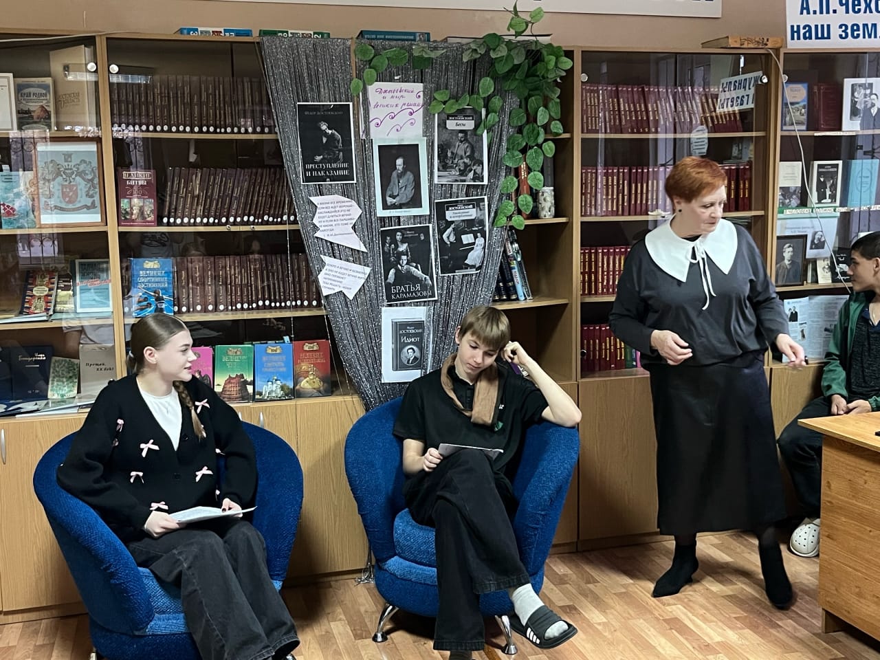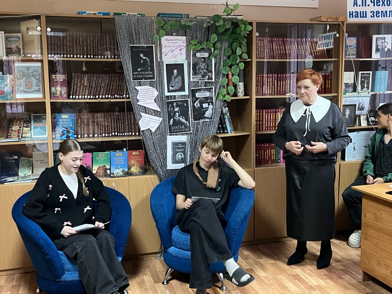 В день рождения Федора Михайловича Достоевского в школьной библиотеке для старшеклассников были представлены литературные зарисовки. В роли корреспондента выступила Чеберя Дарья, ученица 11 класса, в роли писателя – Кисляк Захар, ученик 9 класса. Из репортажа о знаменательных датах в жизни писателя и о его отношении к своим произведениям, обучающиеся поняли, что и сегодня Ф.М. Достоевский - один из самых читаемых писателей в мире. Он был признан классиком русской литературы и одним из лучших романистов мирового значения. Ребятами была разыграна сценка из произведения «Преступление и наказание». В роли Сони Мармеладовой читала Чипурная Дарья, в роли Родиона Раскольникова выступил Хруленко Николай. Такие мероприятия призваны поддерживать интерес детей к чтению классической литературы, способствовать общему их развитию.
