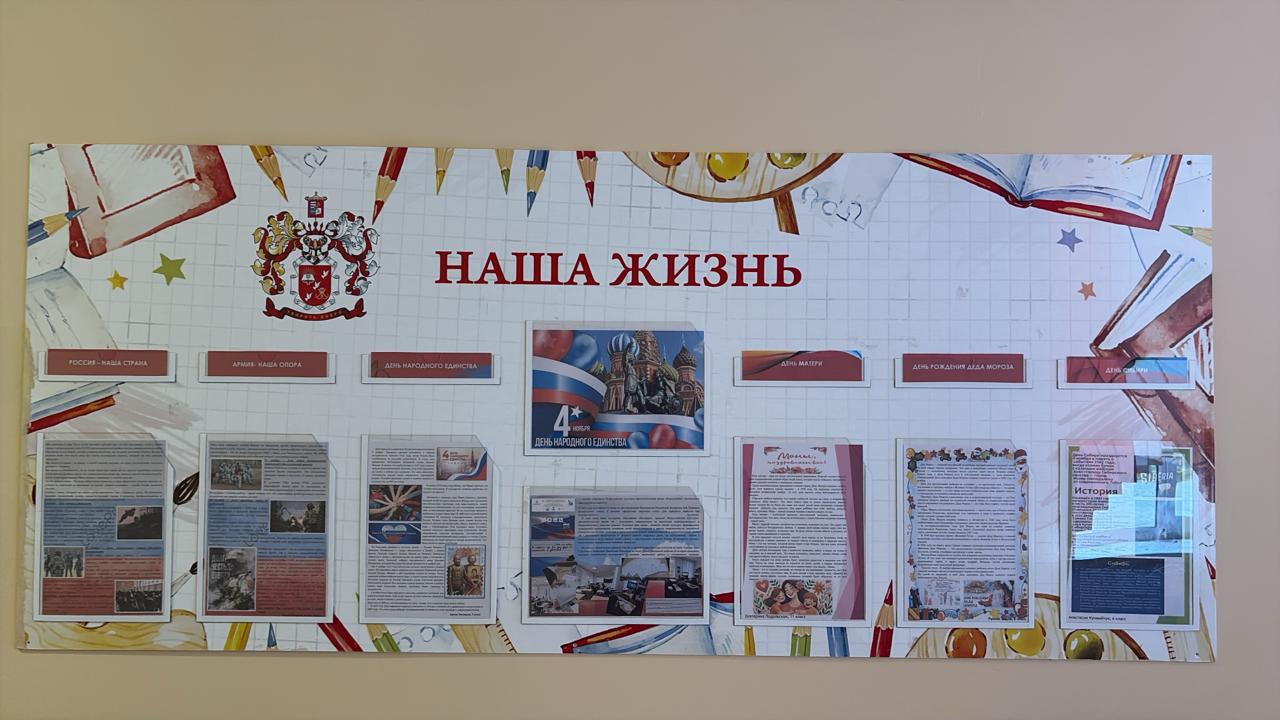 6 ноября был размещен новый выпуск стендовой газеты «Наша жизнь». Центральной темой выпуска стал государственный праздник День народного единства, который в этом году отмечается в Российской Федерации в 21 раз. 1 октября стартовала Всероссийская культурно-просветительская акция «Я – россиянин», которая была посвящена этому празднику. Корреспондентами этого выпуска были Кучмийчук Анастасия (5 класс), Чадов Руслан (8класс), Екатерина Подольская (11 класс), Кисляк Захар (9 класс). Ребята в своих статьях рассказали о других знаменательных датах ноября: о Дне войск радиационной, химической и биологической защиты, о Дне Сибири , О Дне матери. Живой интерес у ребят вызвала статья, рассказывающая о дне рождения Деда Мороза. Выпуск ребята готовили под руководством педагога дополнительного образования Титаренко Дарьи Николаевны.