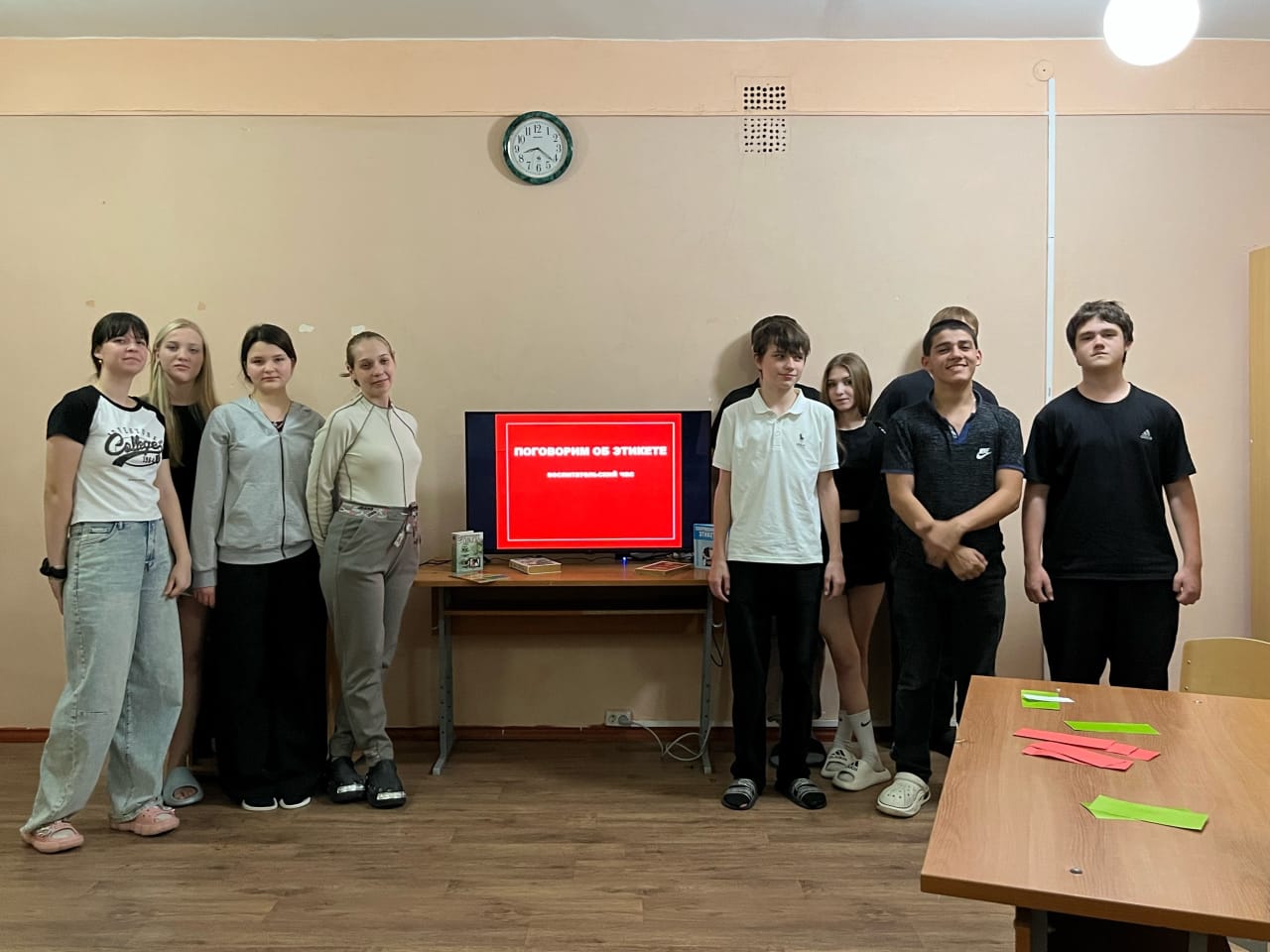 10.11.2025 г. воспитанники 5 отряда стали участниками увлекательного "Турнира вежливости" из цикла "Поговорим об этикете". Особый интерес у подростков вызвала подача материала воспитателем Загуменной Дарьей Васильевной. Она не только приготовила места для команд, разработала критерии дляработы счетной комиссии, но и подготовила интерактивную игру "Своя игра", где за каждый вопрос команда получала баллы за правильный ответ. Игра прошла на одном дыхании. Участвовали даже гости из 3 отряда. При ответах на вопросы возникали целые дискуссии. Победителями стали все, кто поучаствовал в командной игре и усвоил уроки этикета.
