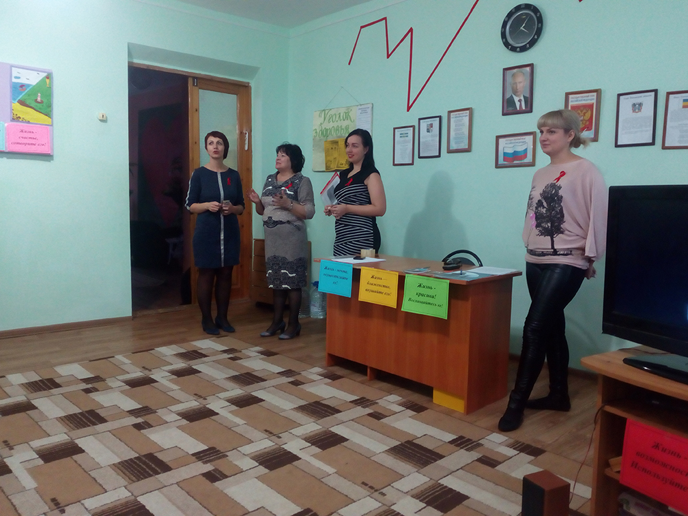 30 ноября 2017 года В ГКОУ РО «Таганрогская санаторная школа-интернат» на кануне Всемирного дня борьбы со СПИДом прошёл воспитательский час для учащихся 7-8 классов. Воспитатели Журавлёва Ю.А. и Кравцова О.И. рассказали ребятам о существующей проблеме, привели статистические данные по городу Таганрог, показали социальные ролики о жизни людей зараженных ВИЧ-инфекцией и о недопустимости изоляции этих людей из жизни общества. На память о мероприятии у каждого воспитанника осталась красная ленточка, как символ солидарности в борьбе со СПИД.