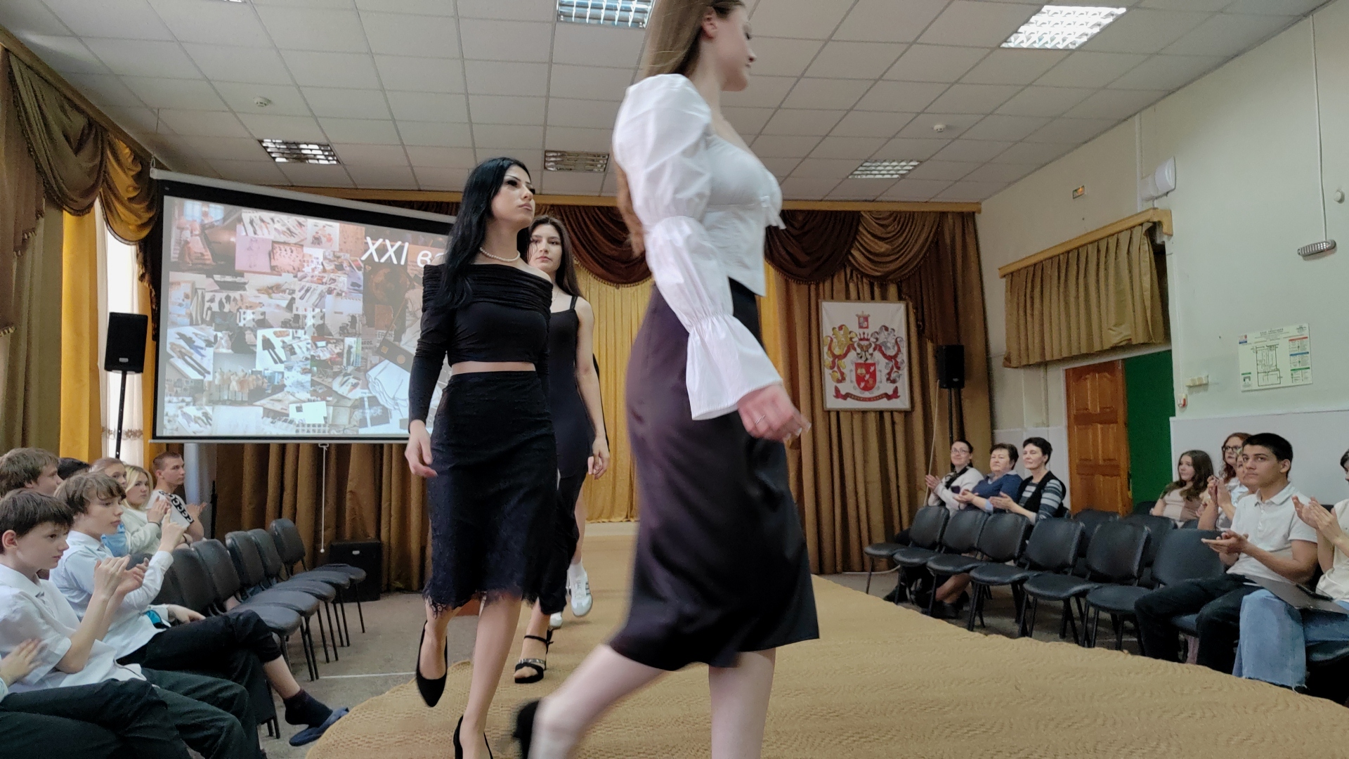 Праздник был зрелищным, красочным. Зажигательный танец «Буги-вуги», шуточная песенка «Леди Мода», танцевальная композиция с элементами акробатики в исполнении старшеклассниц были яркими, запоминающимися моментами мероприятия.