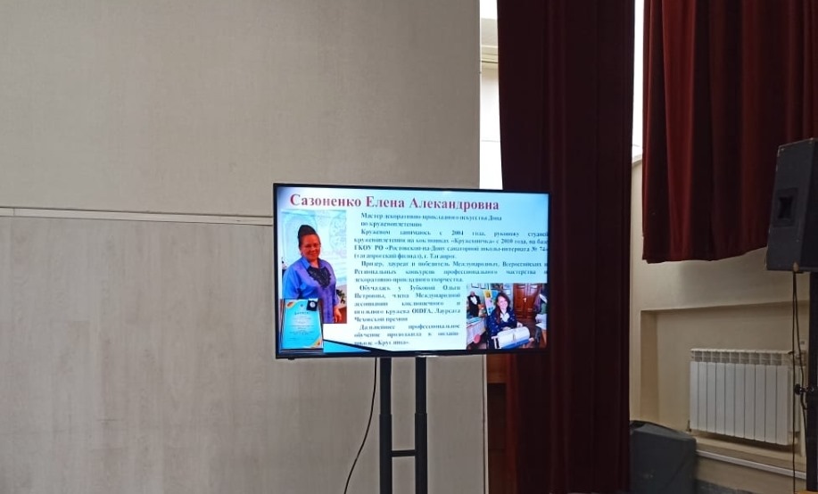 На базе ГАУК РО "Областной Дом народного творчества" работала интерактивная площадка, где для посетителей Дома Творчества была представлена выставка работ педагога дополнительного образования Таганрогского филиала ГКОУ РО «Ростовская-на-Дону санаторная школа-интернат № 74», Мастера декоративно-прикладного искусства Сазоненко Е.А. и ее учениц – "Вдохновение через творчество". Так же был проведен мастер-класс "Под стук коклюшек". В проведении мастер-класса активно участвовали две воспитанницы кружка "Кружевничка" Икиликян Елизавета и Смирнова Варвара.