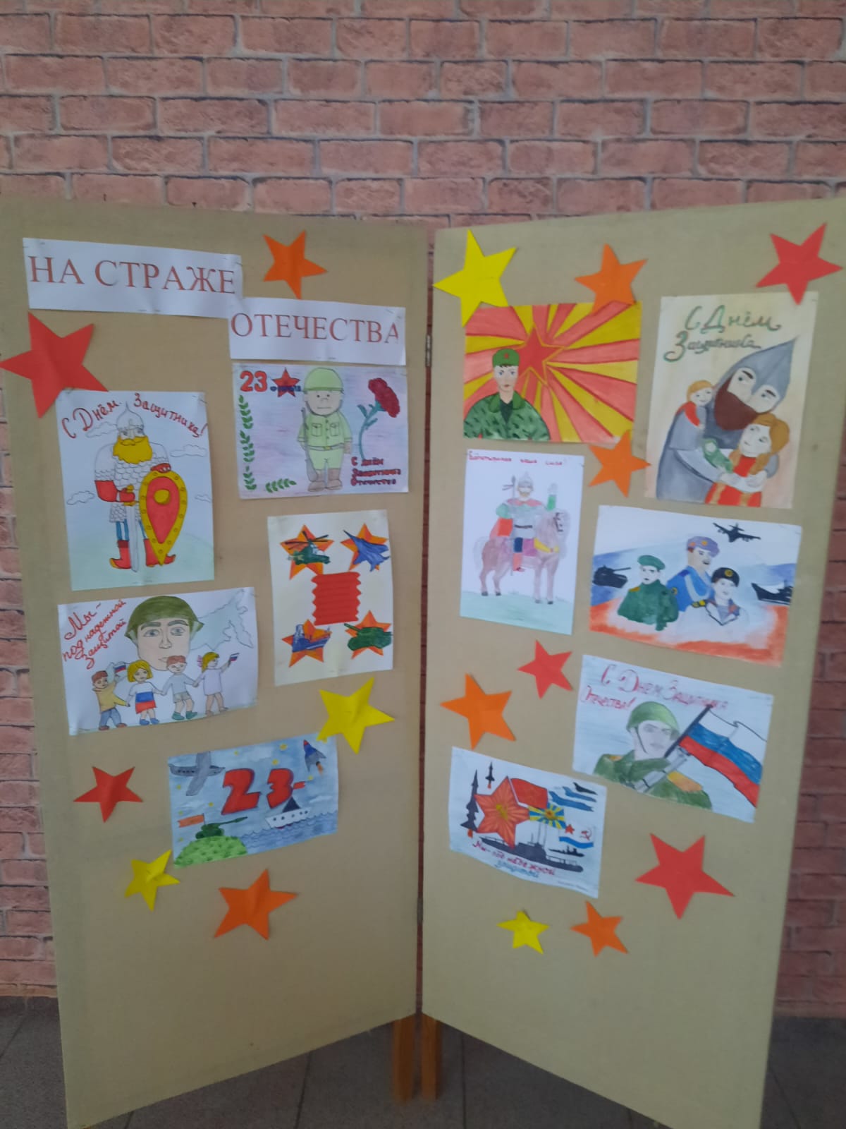 Педагогом дополнительного образования Коркуленко С.И. была организована выставка рисунков учащихся школы «На страже Родины».