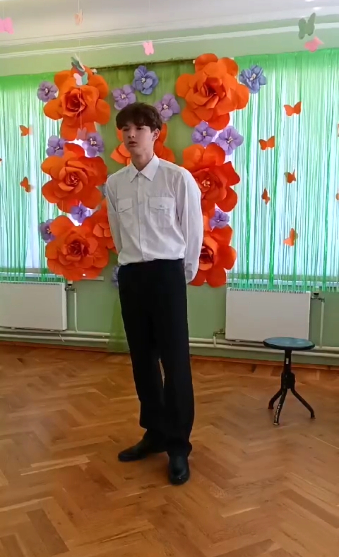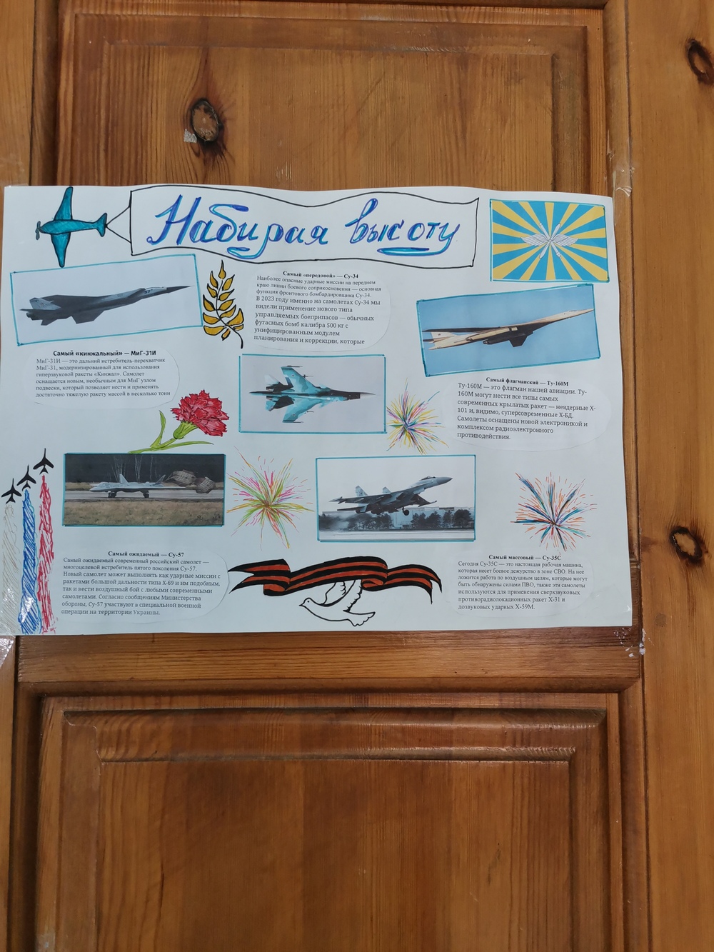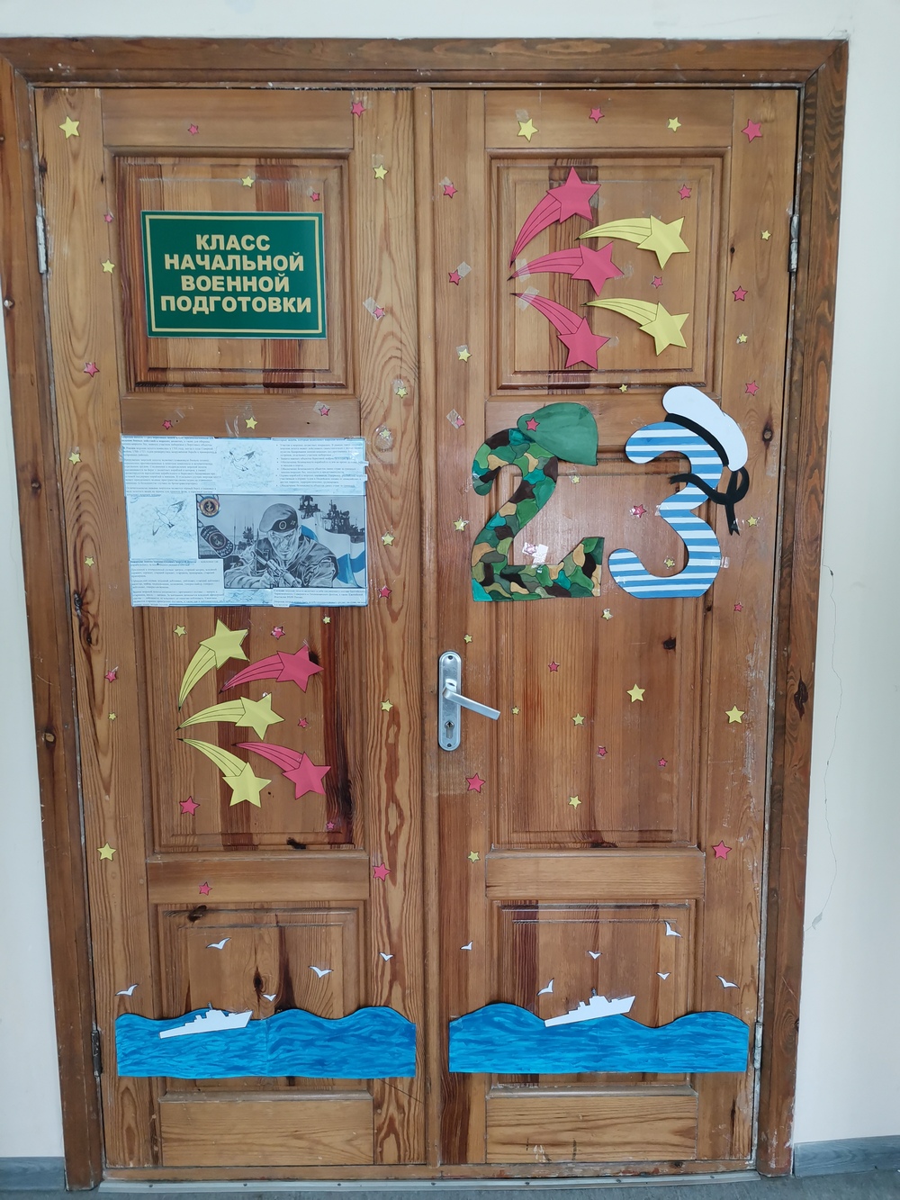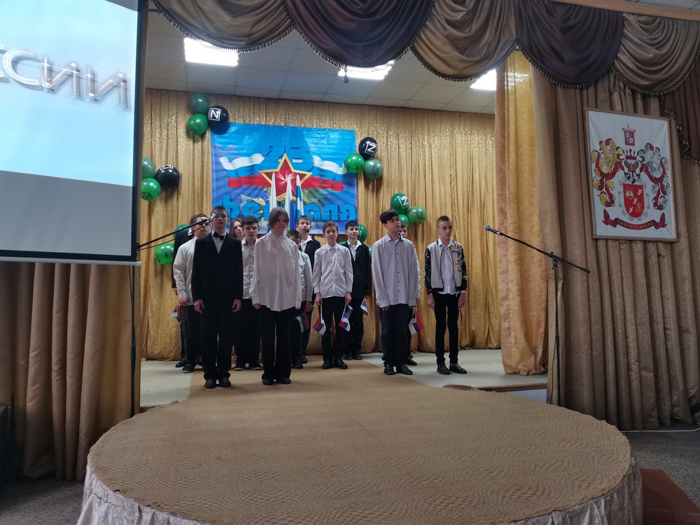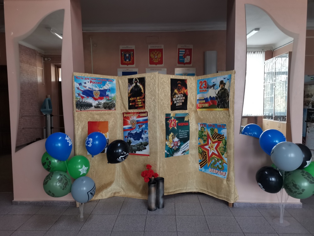 Каждый класс оформил информационные листки о родах войск славной российской армии, а воспитанники 5 отряда (воспитатель Горячева Д.В.) оформили фойе школы и сцену актового зала.