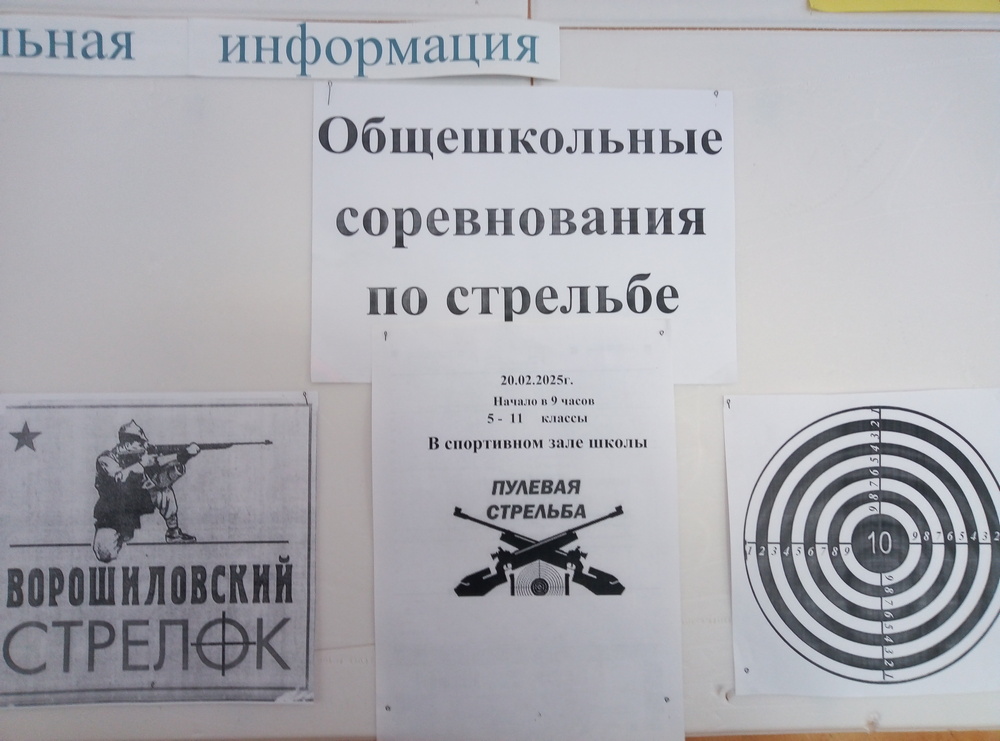 20 февраля 2025 года в Таганрогском филиале ГКОУ РО «Ростовская-на-Дону санаторная школа-интернат № 74» в соответствии с планом воспитательной работы и в рамках Недели, посвященной Дню Защитника Отечества, прошли соревнования по стрельбе из пневматической винтовки среди учащихся 5 – 11 классов. «День юного стрелка» провели при участии Гриц Александра Ивановича - ПОУ Таганрогская РО ДОСААФ России РО. Помощь в проведении соревнований оказал студент ЮФУ, бывший выпускник школы Сергеев Никита. Все победители соревнований были награждены почетными грамотами, медалями, знаком «Юный стрелок» и удостоверением к нему.