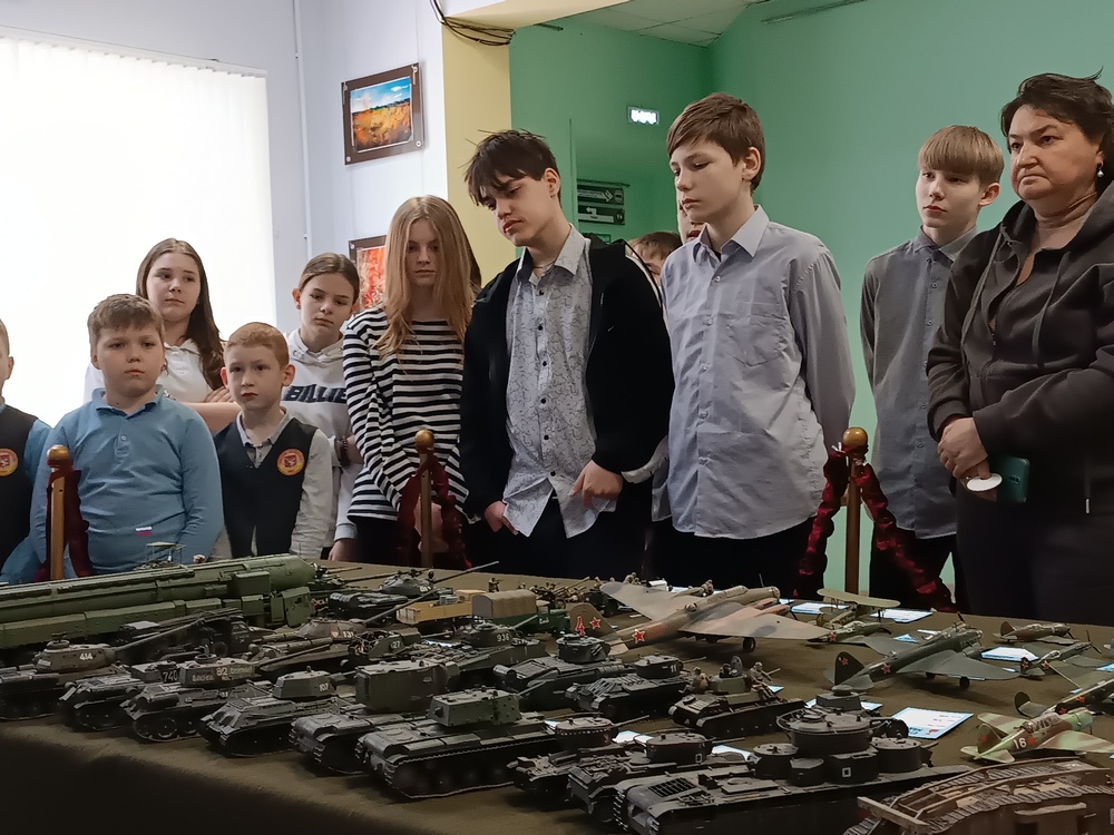 09.04.2025 г. обучающиеся 5-6 классов Таганрогского филиала ГКОУ РО «Ростовская-на-Дону санаторная школа-интернат № 74» посетили выставку стендовых моделей военной техники, посвященной 80-летию Победы. В МБУК «Молодежный Центр» ребят встретил автор представленных на выставке более 80 моделей танков, самолетов, вертолетов. Он не только показал, но и рассказал, как эта техника помогала воевать нашим воинам в годы Великой Отечественной войны и как помогает в наши дни. Мальчики и девочки с интересом слушали рассказы о «ночных ведьмах» и боевых аллигаторах, танках и мощных современных комплексах. Когда рассказ автора, создателя моделей закончился, мальчишки задали множество интересующих их вопросов: сколько времени тратится на создание модели, что внутри моделей, далеко ли стреляли танки, кто их создавал, где их выпускали, легко ли управлять «кукурузником» и какая площадь поражения современной военной техники. Обучающиеся узнали много нового и интересного.