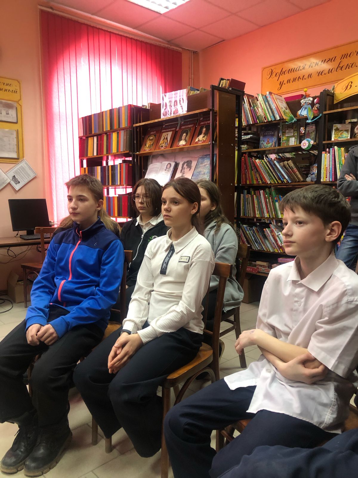 18 марта 2025 года обучающиеся 5-6 классов Таганрогского филиала ГКОУ РО «Ростовская-на-Дону санаторная школа-интернат № 74» стали участниками встречи с поэтессой Липовецка-Тореевой Марией Ивановной, которая была организована сотрудниками библиотеки и педагогом-библиотекарем Дудка С.Ю., Встреча состоялась в библиотеке имени А.Гайдара.