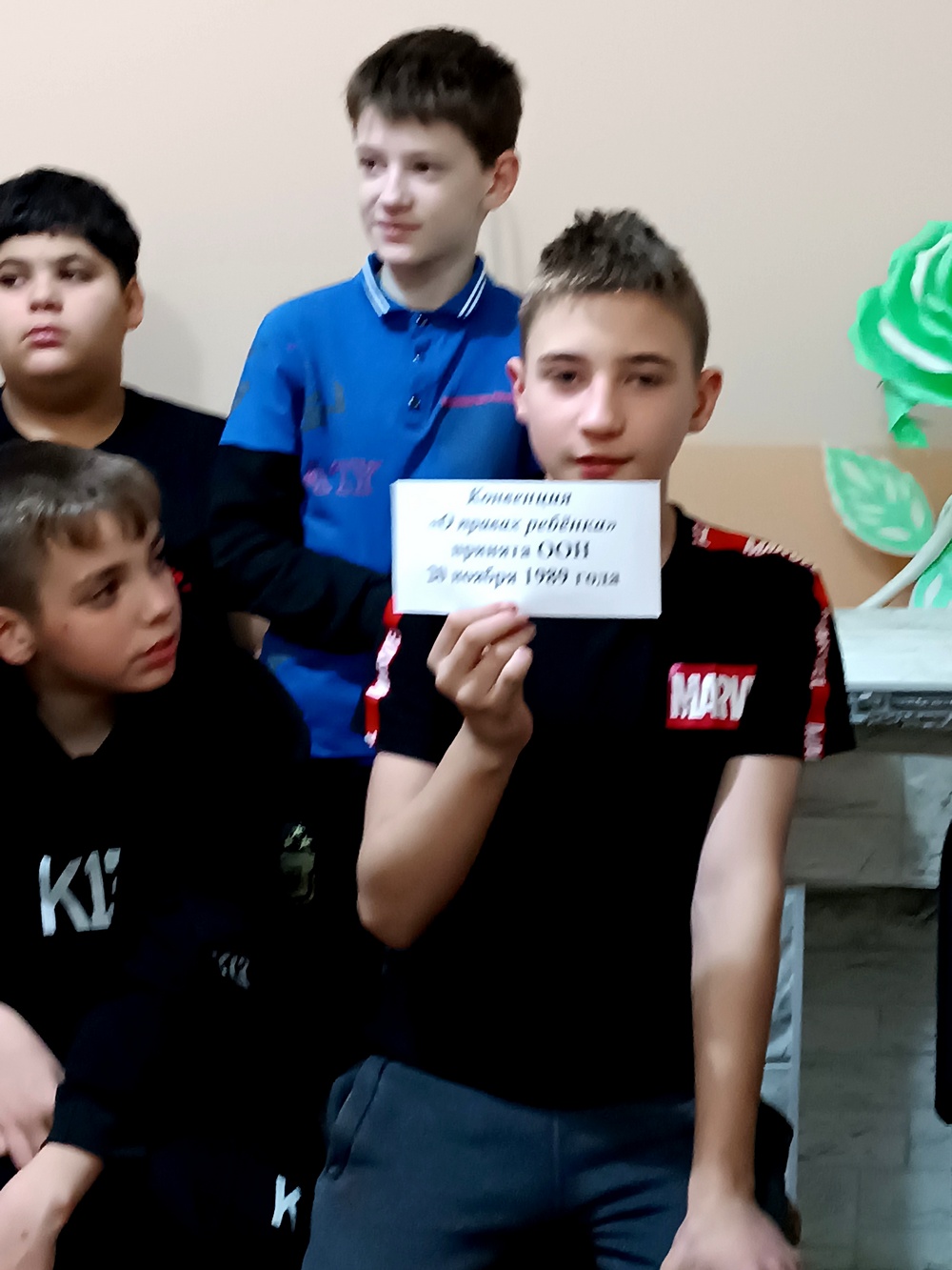 В 5,6,7 классах – беседа «Право быть ребенком», где дети были ознакомлены с основными документами: «Всеобщей декларацией прав человека» и Конвенцией «О правах ребенка», отражающими права ребенка в обществе, в игровой форме изучены права и обязанности детей и взрослых (воспитатели, социальный педагог);