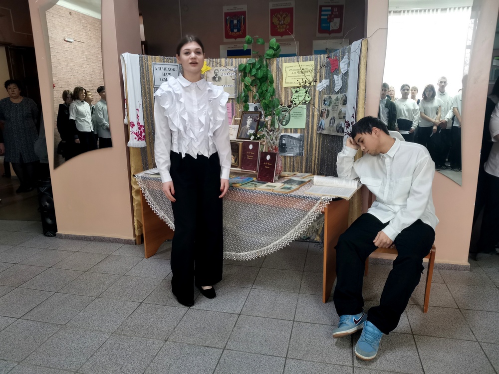 Так же Еленой Алексеевной Архипенко были подготовлены лекторы из числа учеников 9 класса (Степаненко Никита и Свергун Арсений), которые провели для ребят 5,6,7,8 классов лекторий, в котором рассказали об интересных и мало известных фактах жизни Антона Павловича Чехова.