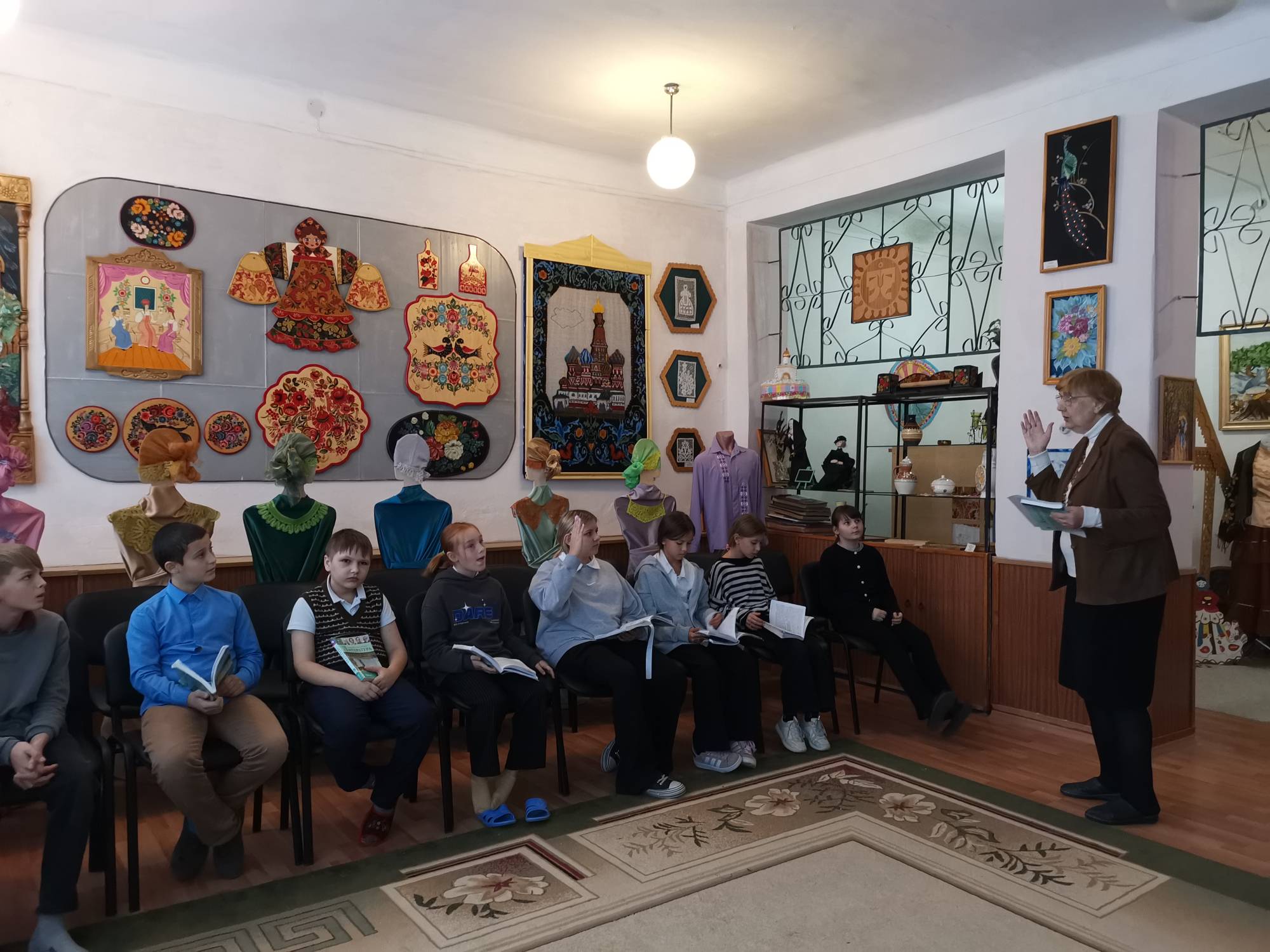 Учитель русского языка и литературы Архипенко Е.А. ежегодно проводит в школьном музее уроки литературы. Так, в 5 классе, был дан урок «Волшебные сказки», в ходе которого ребята слушали рассказ учителя, искали волшебные предметы среди экспонатов музея, отвечали на вопросы, инсценировали отрывки из сказок. Урок прошел очень интересно и познавательно.